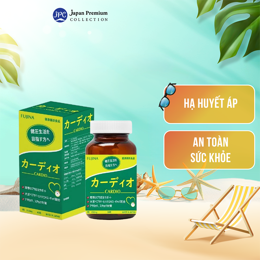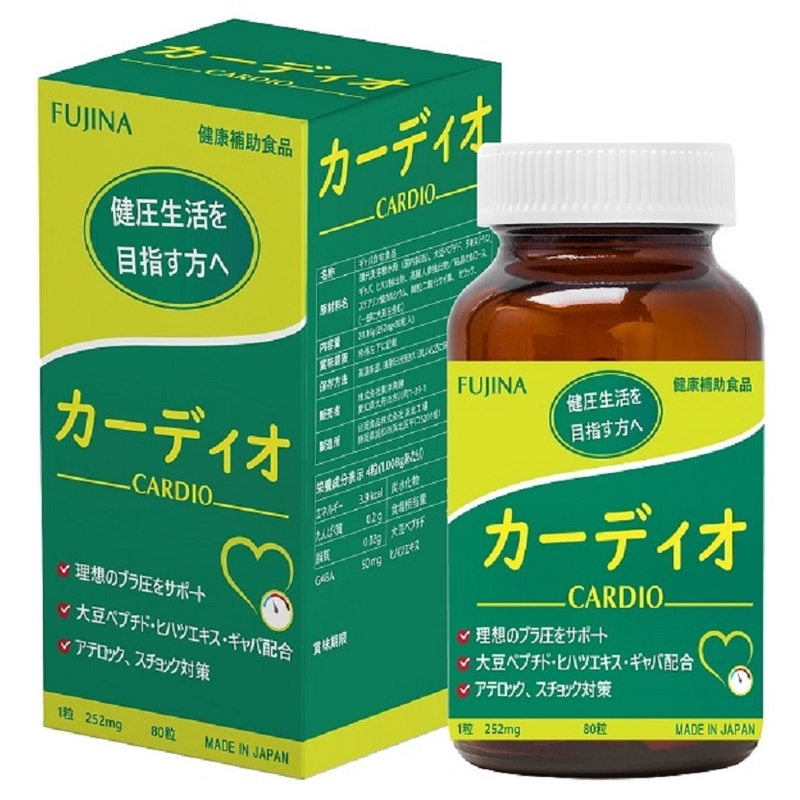 Viên hạ huyết áp Cardio Fujina Nhật Bản - Lọ 80 viên là sự kết hợp hoàn hảo các thảo dược tự nhiên lâu đời trong nền y học cổ truyền Nhật Bản như Tiêu lốt, Peptide đậu nành, Tinh chất nhân sâm có tác dụng dược lý đặc biệt dành cho người bị cao huyết áp, hỗ trợ giảm nguy cơ cao huyết áp một cách an toàn, hiệu quả, ngăn ngừa những biến chứng nguy hiểm, đồng thời hỗ trợ cải thiện sức khỏe tim mạch cho người dùng. Sản phẩm huyết áp Nhật Bản Cardio được nghiên cứu và phát triển bởi tập đoàn Fujina Nhật Bản, có đầy đủ nghiên cứu lâm sàng chứng minh hiệu quả.